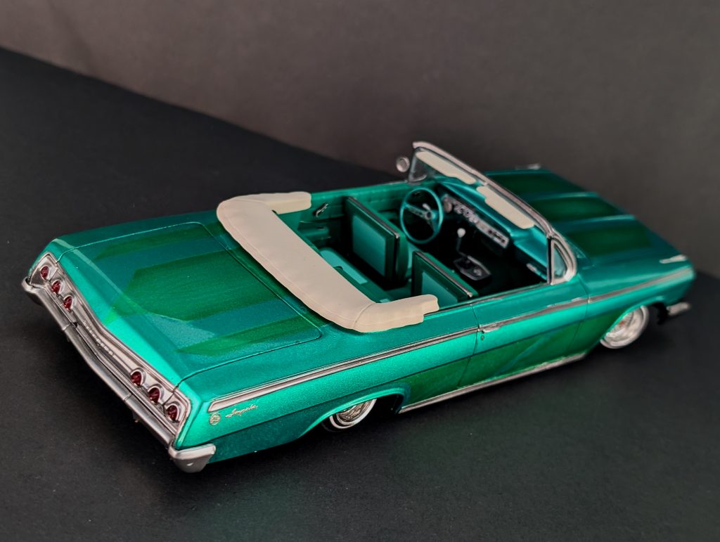 Features 62 Impala Lowrider admin October 3, 2025 Name: Dave MacRae @gsg_models/ FB: gsg_modelsLocation: Glasgow, ScotlandBrand name of kit: AMT 1/25 AMT Cheverolet Impala Convertible. Painter in various Mr. Color green. Detail Junkee detail set Jevries whees Photos by: Tim Rhine About the Author admin Administrator Visit Website View All Posts Post navigation Previous: Winston 25th AnniversaryNext: Lamborghini Aventador LBW Red Bull Related Stories Features Ferrari 512BB admin October 13, 2025 Features Chevrolet Corvette C8 admin October 10, 2025 Features Donk admin October 8, 2025