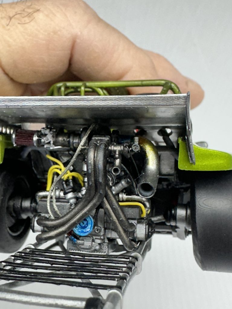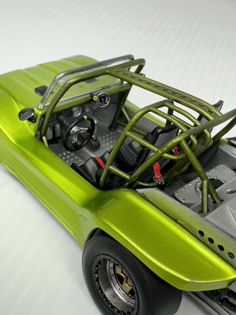 3-D kit from black box, painted in tropical glitz, candy, lime, green, wired and detailed the engine. Everything else is from the kit, no aftermarket accessories. Other than seatbelts was a fun little project.!