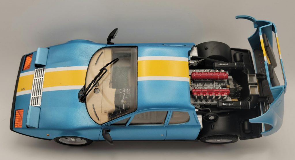 Kit used was a Fujimi Ferrari 512BB. This was built straight out of the box as the kit is great standing on its own. As always Scale Finishes paints were used. Azzurro California Metallic was the blue is used, and the yellow stripe was Giallo. Built this for a FB group buildoff over at “Model Car Build Off.