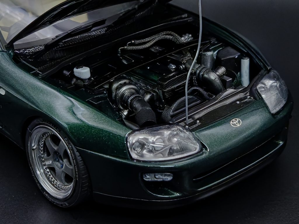 This model is a scaled replica, build for a friend. His 700bhp Supra is a common sight in the Dutch car scene, and it was a pleasure to build a replica for him.