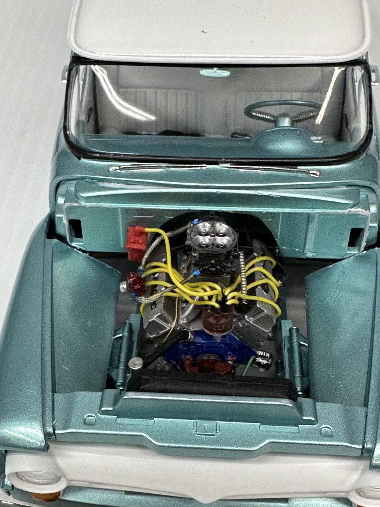 Started with the Revell Foose kit, modified it with a golden bee 3-D lowered frame and a 3-D 351 Cleveland engine that Nick detailed, the paint is scale finishes Misty Turquoise lacquer with 2K clear. Also has aftermarket 3-D mean machine motors wheels. This was a fun build.